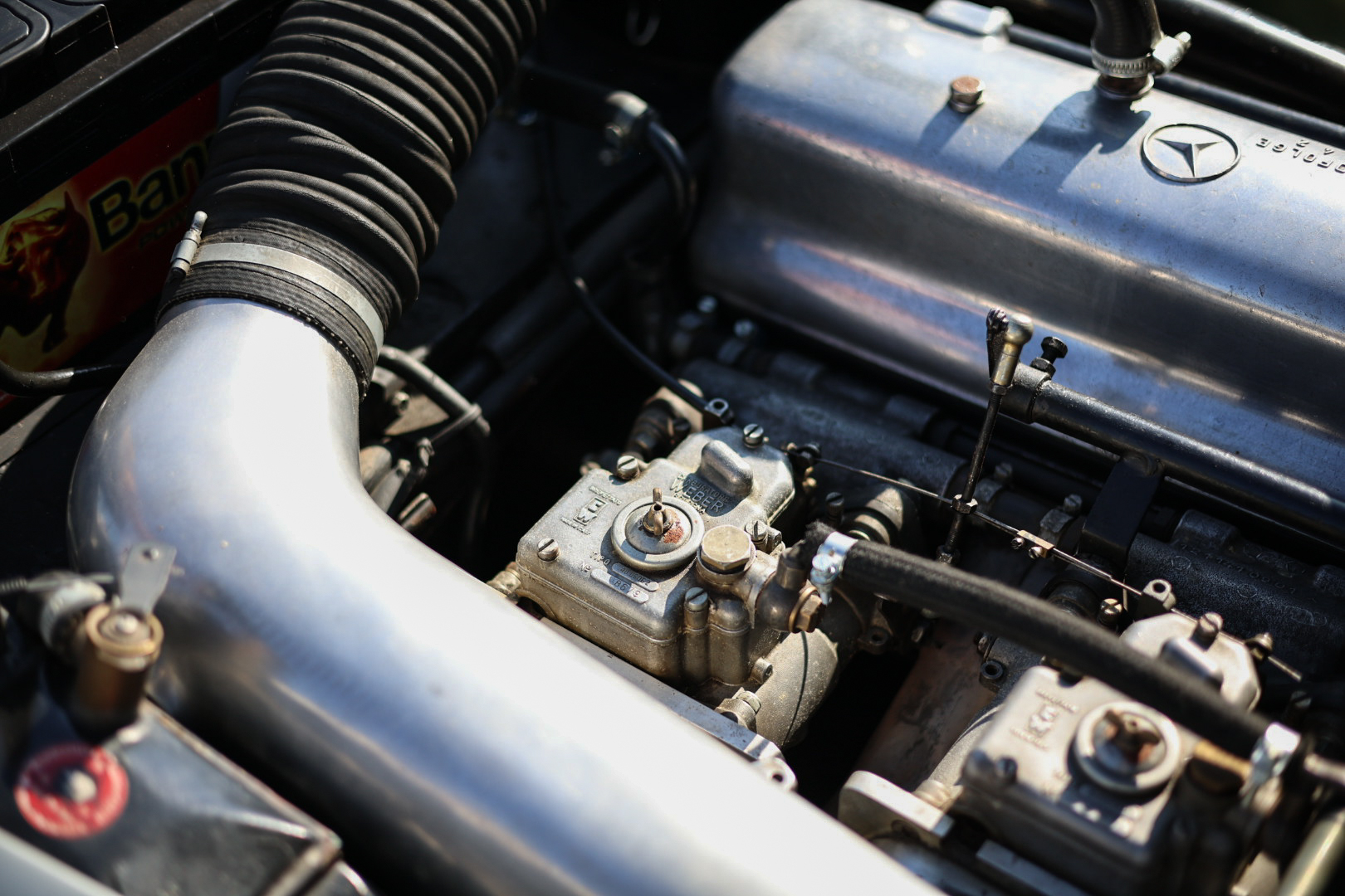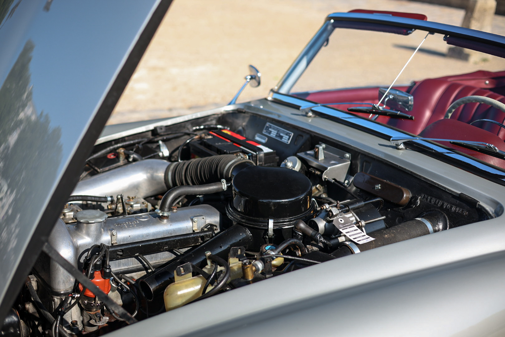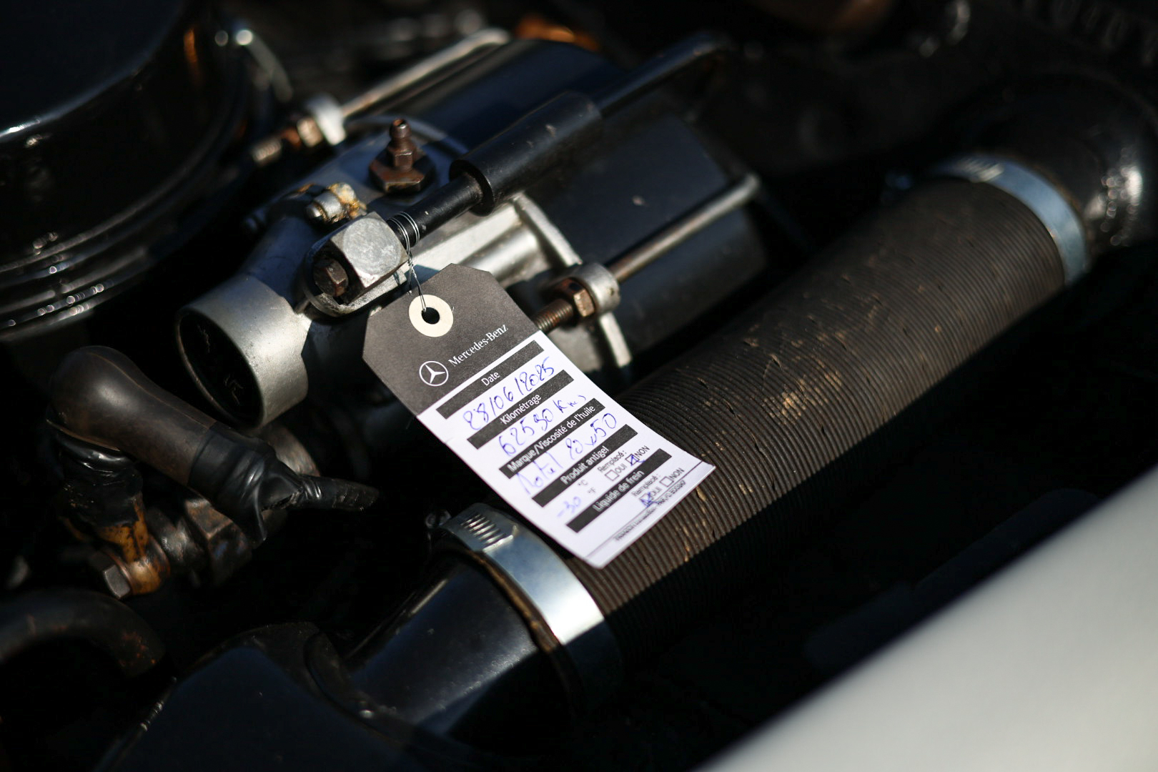 Le véhicule a fait l’objet d’un certain nombre d’interventions entre 2016 et 2020, parmi lesquelles une révision du carburateur, le remplacement du réservoir d’essence par une pièce d’origine Mercedes, un changement des amortisseurs ainsi qu’une vidange régulière du moteur. Une dépose et repose moteur a également été effectuée.