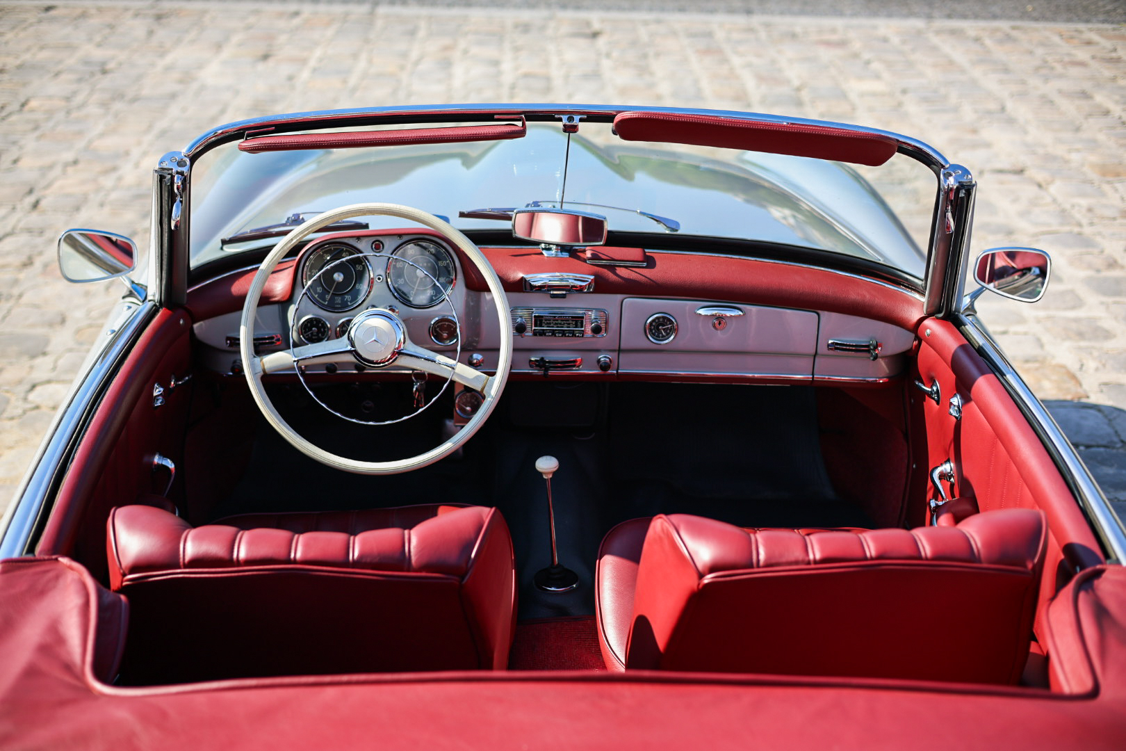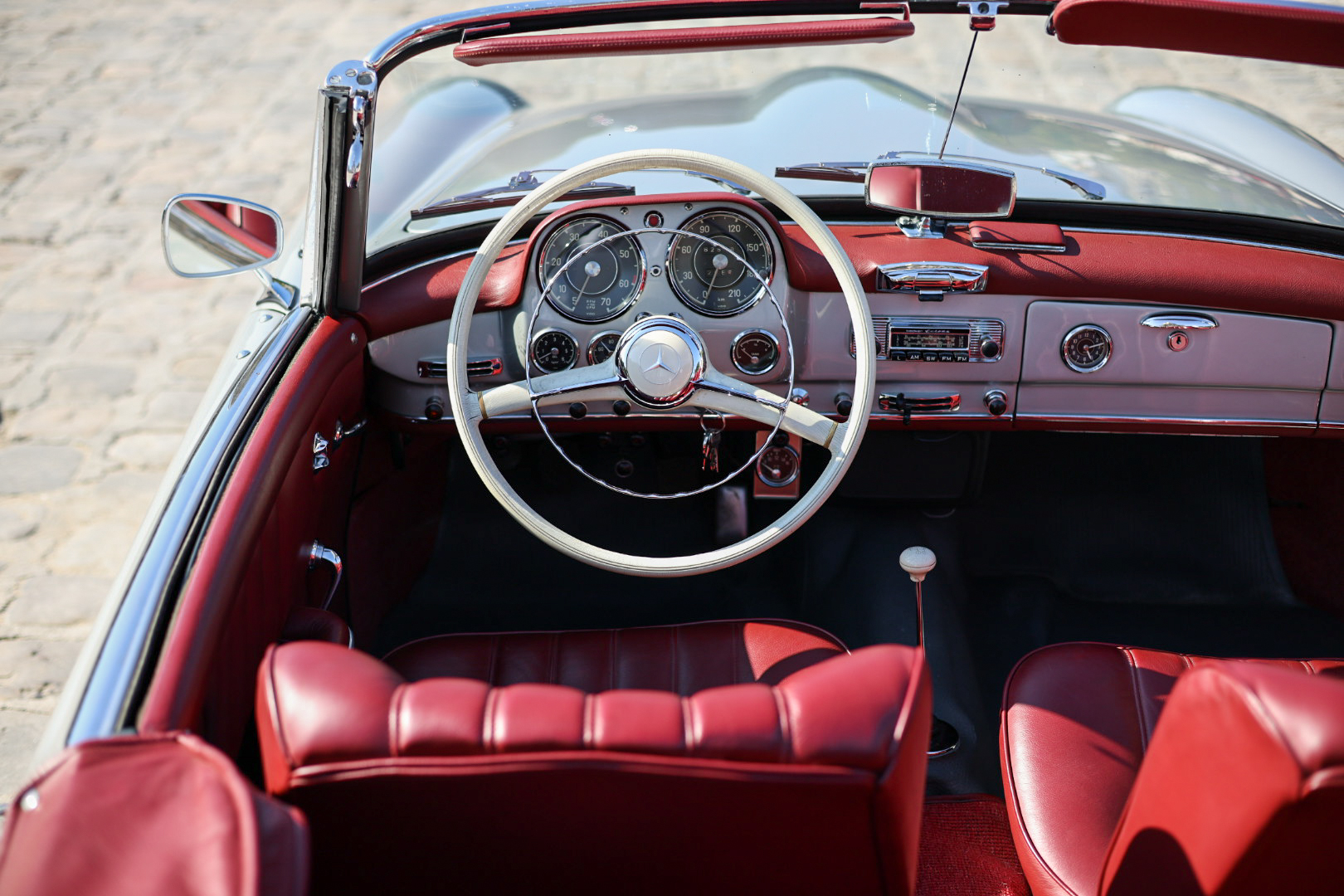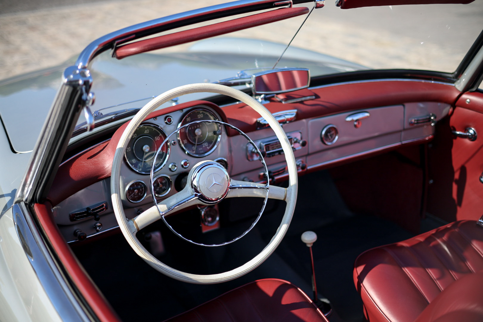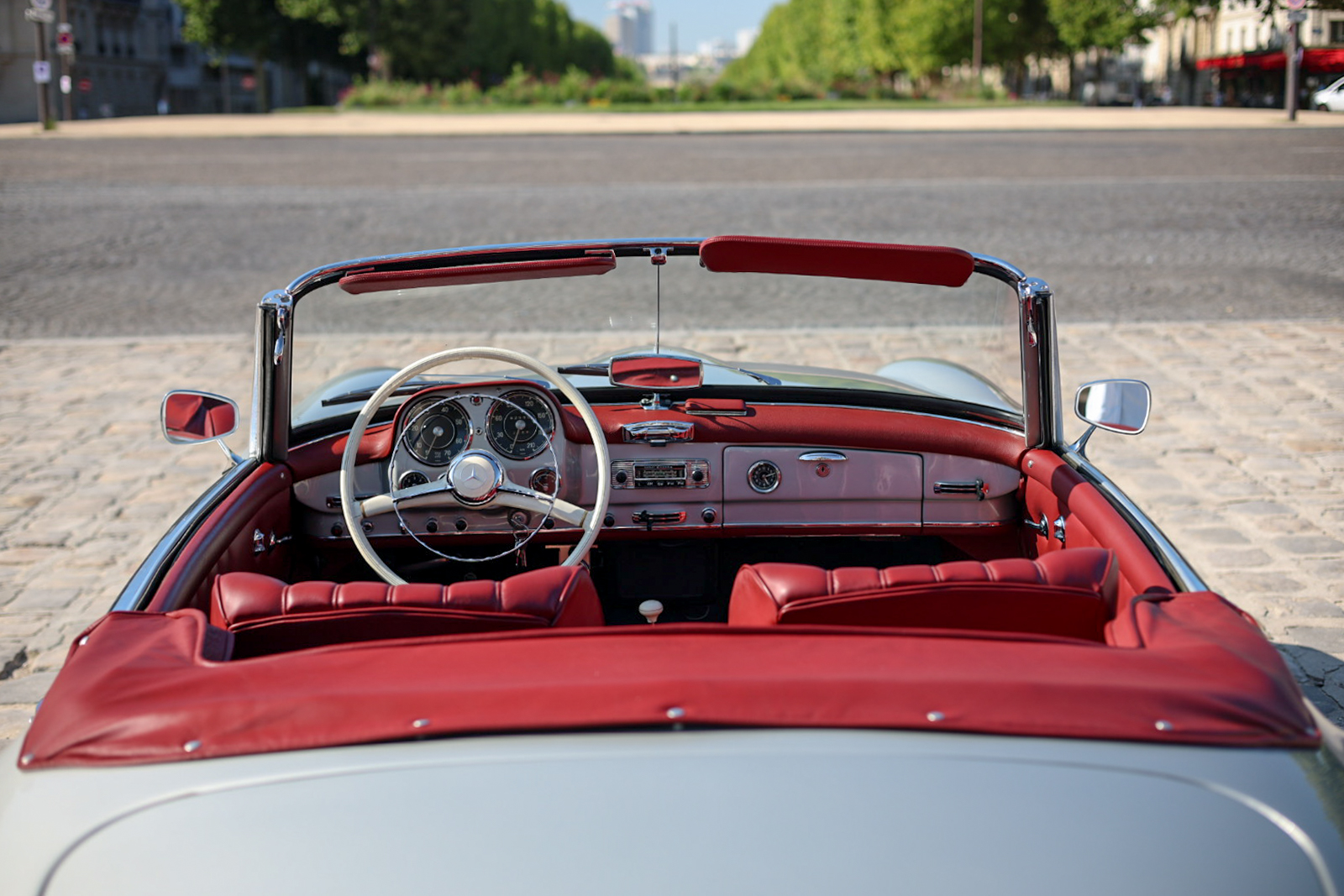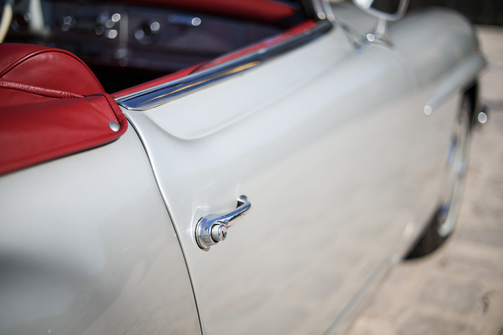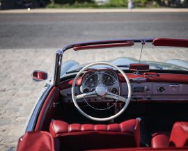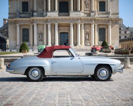 Héritage Automobiles vous propose à la vente cette Mercedes-Benz 190 SL de 1961 dans une configuration gris intérieur cuir rouge.